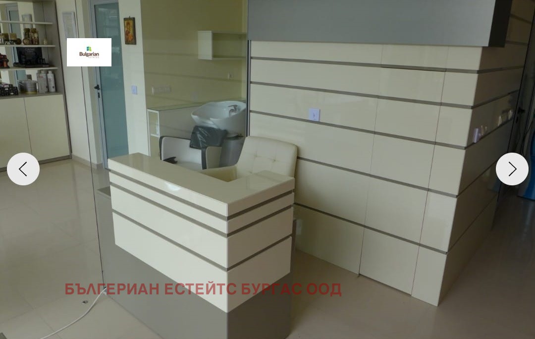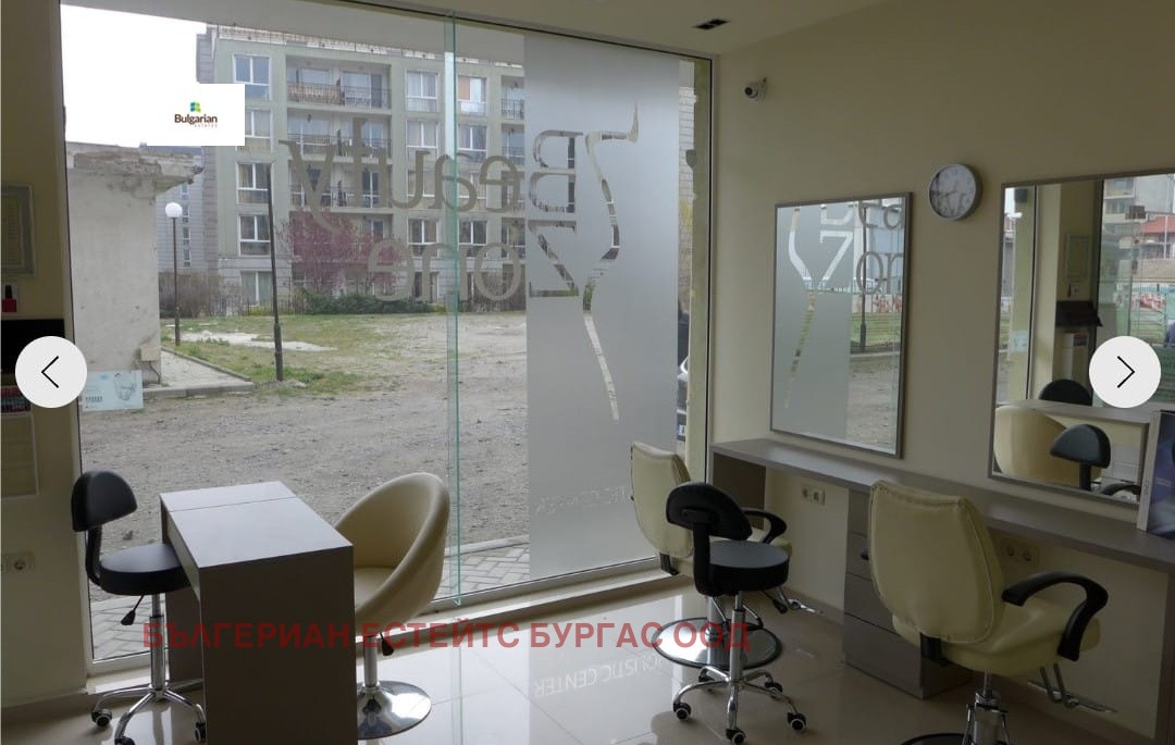 ПомориеПредлагаме за продажба търговско помещение с площ от 317,75 кв.м., разположено на партерен етаж в сграда със смесено предназначение в комплекс Феста , град Поморие. Имотът се продава с наличното обзавеждане и е с утвърден статут на Център за красота по одобрен архитектурен проект.