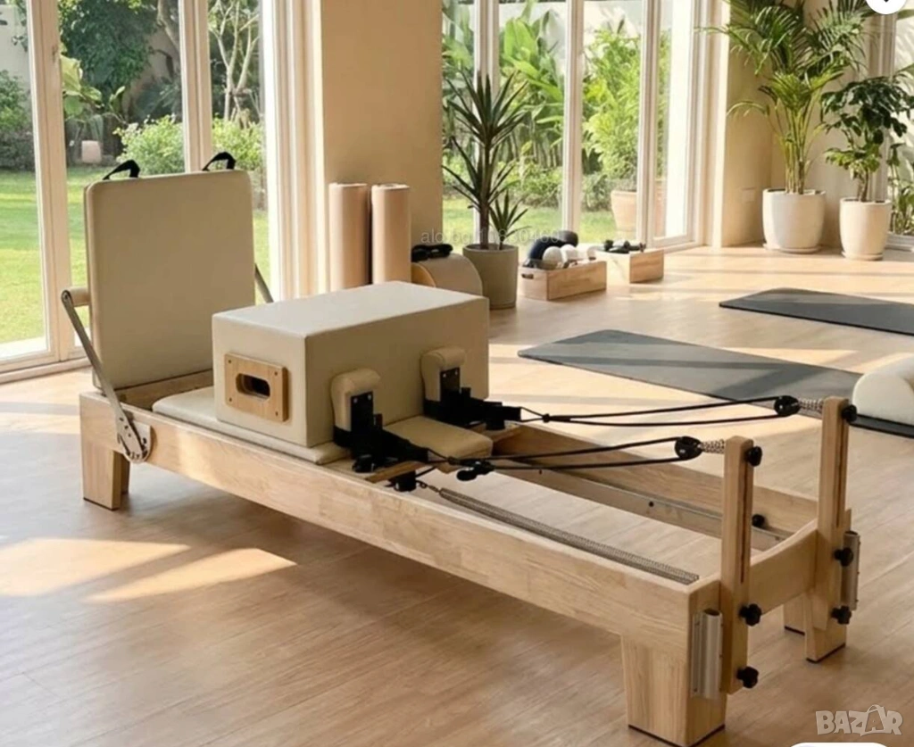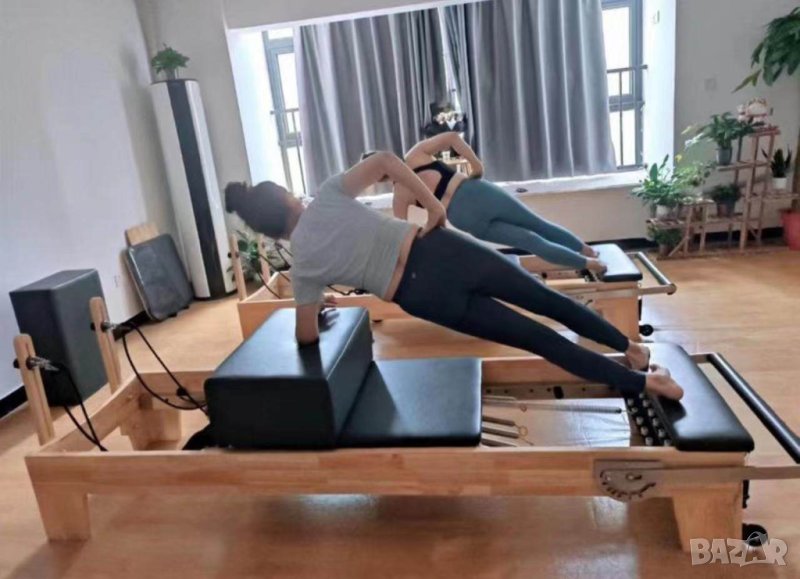 Функционален модел Reformer на метода Пилатес, предоставящ на трениращия разнообразие от упражнения за цялото тяло.