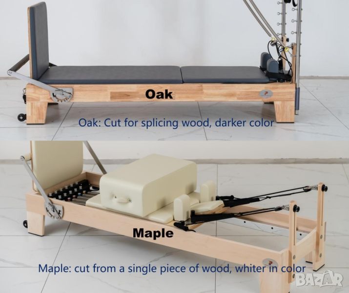 Стоящата платформа на сгъваемия реформър е изработена от дъбова дървесина с гладка повърхност, удобна за боси крака.