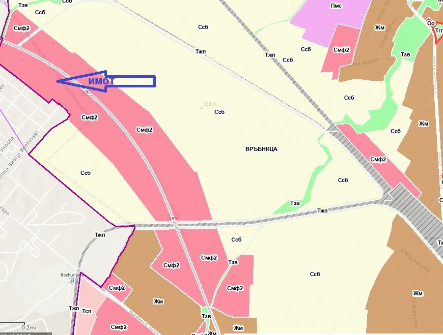Волуяк, местност Раздолци, с лице 37м.на бул. Европейски път, което позволява безпроблемен достъп на автомобили, камиони, тирове и други. Имотът е равен и се намира на около на 5км. от Околовръстният път на София, в близост до шоу-рума на 'Ситроен' Около него има всички комуникации- асфалт, канализация, ток, газ. Района попада в зона Смф2. Параметрите на застрояване за Кинт-1.2,Плътност 60%. и е подходящ за офис или административна сграда, шоу-рум, складове, промишлена сграда за безвредни производства и др. Районът е много комуникативен, разнообразен, бързо развиващ се, и е със засилен инвестиционен интерес от купувачи.