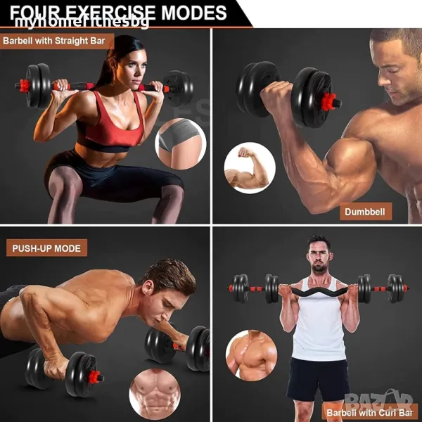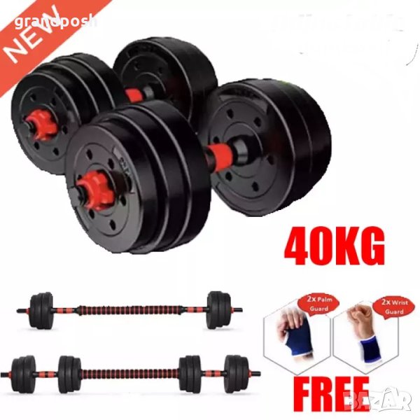 Техническа информация (комплект 40 кг) - 2 гири/дъмбели х 20кг = 40кг + допълнителен лост, който позволява свързването на дъмбелите в щанга.