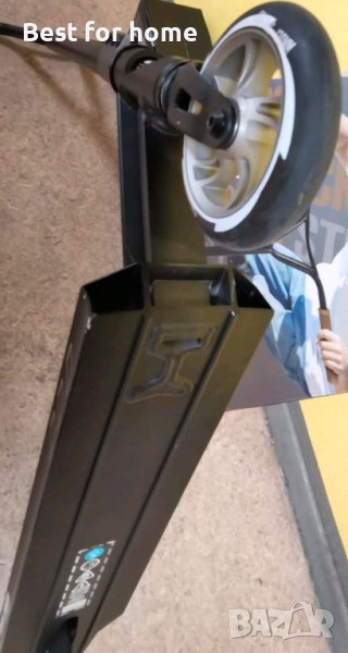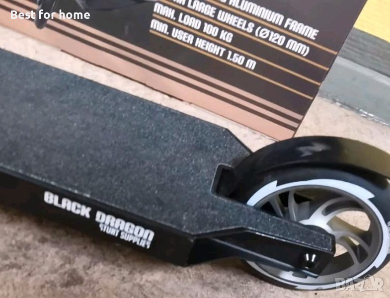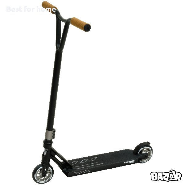 Степен и каскади: всичко е възможно с този матово черен скутер. Алуминиевата рамка е лека и в същото време супер здрава. Кормилото има хубави дръжки с допълнително сцепление и защита срещу удар. Кормилото също е хубаво и широко, което го прави лесно за управление. Поставете краката си на стъпалото с допълнително сцепление и ще се закърнявате по улицата в търсене на халфпайп. Скутерът е с максимална товароносимост 100 кг. Идеален е за каскадьори от 1,50 метра и повече.