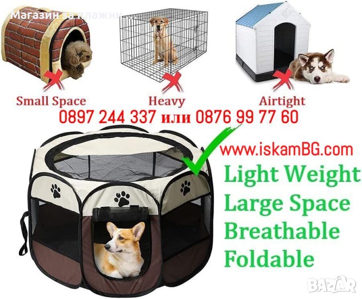 Представяме Ви преносимата кошара за игра подходяща за куче или котка! Това е идеалното решение за родители на домашни любимци, които търсят безопасно и удобно място за игра за своето малко или средно голямо куче. Изработена от висококачествена тъкан 600D Oxford и мрежести панели, лесна за почистване и удобна за вашия домашен любимец.