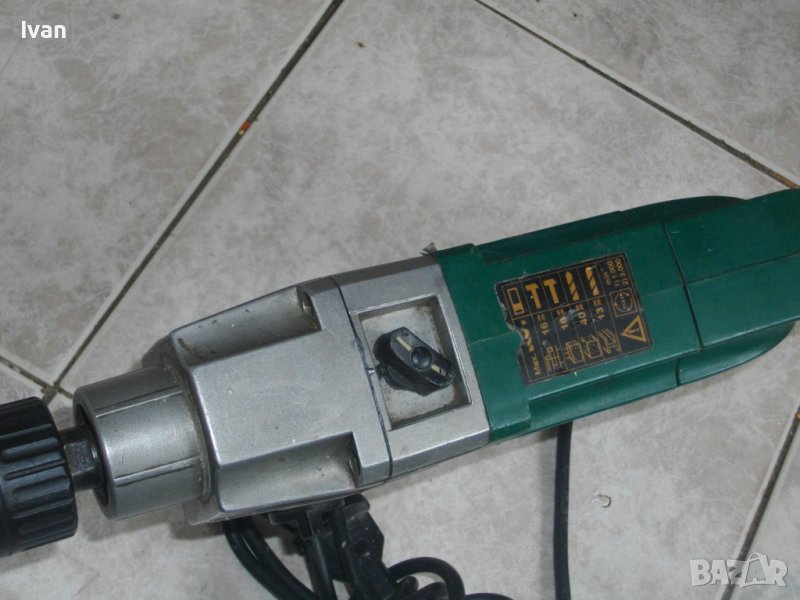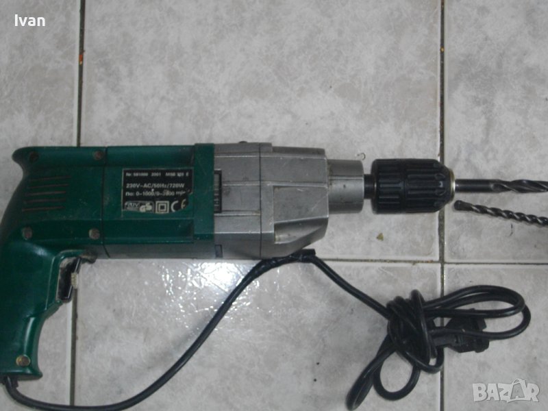 ОПИСАНИЕ на зелена ударна бормашина 720 вата немска Мейстер - цена 199 лв. Професионален модел 720 ватов ударна бормашина-дрелка на Мейстер Крафт. Марка и модел - Meister Craft MSB 720 E Electronic. Производство - Germany- Германия 2001 г. Машината е ползвана, но със запазен външен вид и техническо състояние - описано по-долу. Работи добре на едната функция - пробиване.