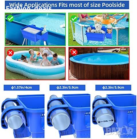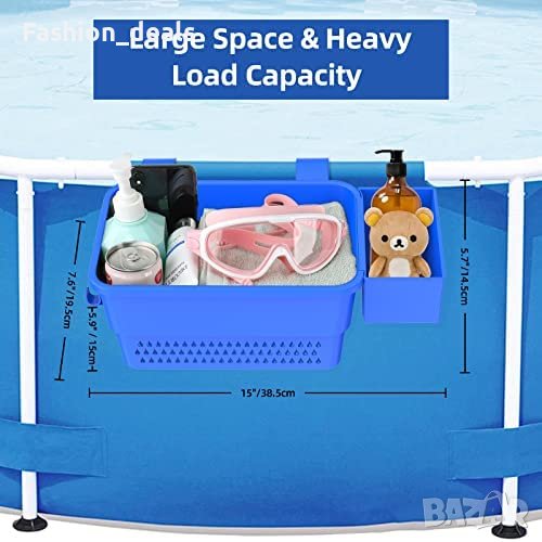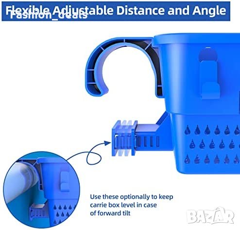 Кошницата за съхранение на басейна Grarg е полезен аксесоар за собствениците на басейни, които искат да поддържат зоната около тях подредена и чиста. Кошницата е проектирана така, че да пасва на повечето рамкови басейни с външен диаметър на тръбите не повече от 2,3 инча, и може да се използва и в закрити басейни или домашни бани. Голямата вместимост и дизайнът с отделна поставка за чаши я правят удобно място за съхранение на аксесоари за басейн, играчки, напитки и други предмети. Уникалният дизайн на телескопичната пружинна катарама поддържа коша балансиран и предотвратява преобръщането му. Кошницата е изработена от висококачествен и екологично чист материал, което я прави издръжлива и устойчива на вода, UV радиация и окисляване. Тя е лесна за инсталиране и има заоблени ръбове, за да гарантира безопасността.
