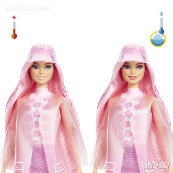 Всяка кукла Barbie® представлява различен пастелен цвят с дълга, цветна коса и декориран корсаж. В торбичките с изненади ще откриеш дъждобран и пола от винил, шапка или лента за глава , ботуши за дъжд и четка. Със 7 изненади в 1 опаковка, куклите Barbie® Color Reveal™ доставят наслада на всяко дете, което обича светът на Barbie®!Ефектът за промяна на цвета върху очите и устните на всяка кукла допринасят за изненадата и забавлението.
