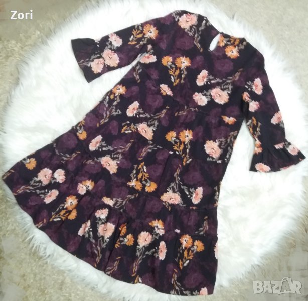 Къса рокля в кафеви цветове на волани с флорален принт → Обява 40281752