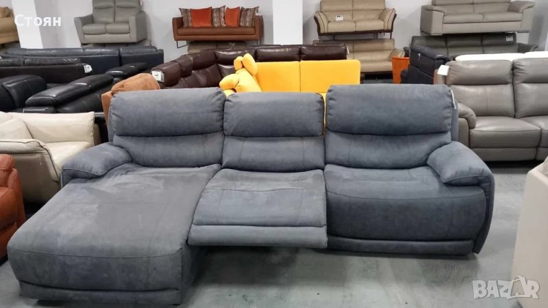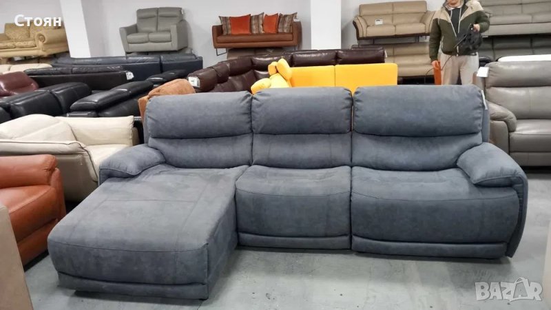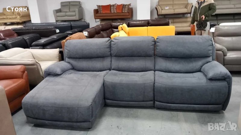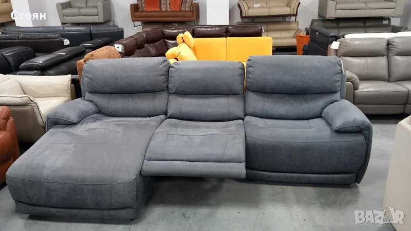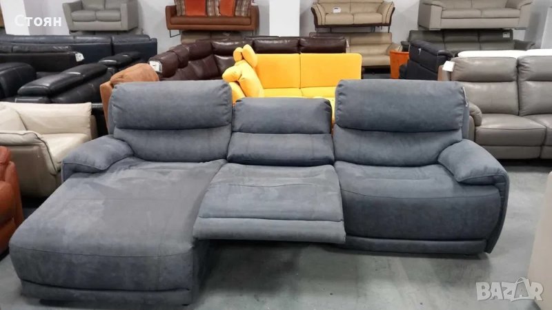 Сиво - Син диван от плат с лежанка и ел. релаксиращ механизъм "Link"Link"