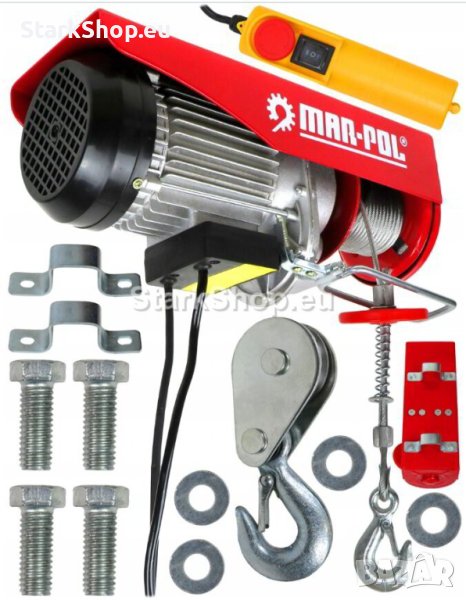 Професионална електрическа въжена лебедка 400 / 800 кг 12 м 1300W Mar-Pol.
