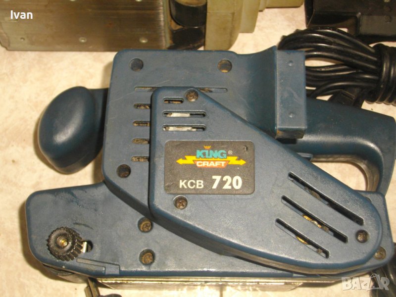 Полупрофесионален 720 ватов, малък, удобен, лентов шлайф, модел на концерна Кинг Крафт.МАШИНАТА СЕ ПРЕДЛАГА НА ОБЯВЕНАТА ЦЕНА ЗА ЧАСТИ ЦЯЛА-НЕ СЕ ВАДЯТ ЧАСТИ ОТ НЕЯ, ИЛИ ЗА РЕМОНТ - НЯКОЙ ДА СИ Я ОПРАВИ. Марка и модел на лентовият шлайф - King Craft KCB 720. Производство - Германия. Много запазен външен визуален вид.Техническо състояние - мотора работи добре, силно и мощно, вдига скоростта, няма никакво искрене на ниво четки/ротор/статор. Задният амортисьор не върти - счупена е зъбчатката на оста , за задвижване - и трябва да се сложи нова зъбчатка, за придвижване на ремъка. Малката зъбчатка е добре, отгоре на ремъка, счупена е долната голяма зъбчатка, която е универсална, и за смяна става от всякакъв друг лентов шлайф от 560 до 800 вата.Снимал съм мястото, на последните две снимки. Всичко останало по машината е в пълна изправност. Мощност на мотора - 720 вата, скорост на лентата - 200м/мин.За шкуркови ленти размер стандартен 76х457мм. Наличие на външен конектор за отпадъчна прах.