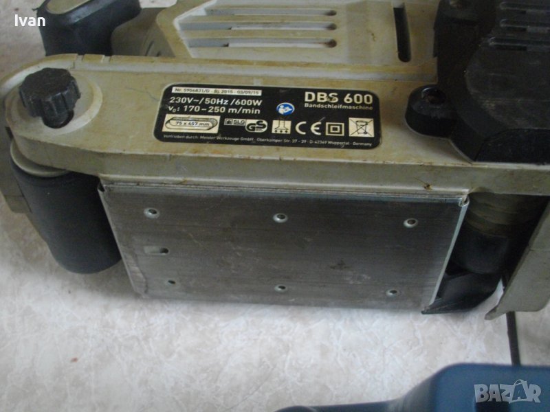 Почти нов, с много запазен външен вид, без драскотинка. Техническо състояни е- работи с искрене. Мощност на мотора - 600 вата, скорот на лентата - 80-200 м/мин, с регулация 6 степени. Конектор отпадъчен прах. Гумирано покритие на заден амортисьор. Автостоп на спусъка. Равна горна повърхност за обърнат стоеж при работа.Размер ползвани шкуркови ленти8пояси - 75х457мм. Цвят на машината - оригиналният английски тъмно син на марката. Ремък на машината - оригинален английски.