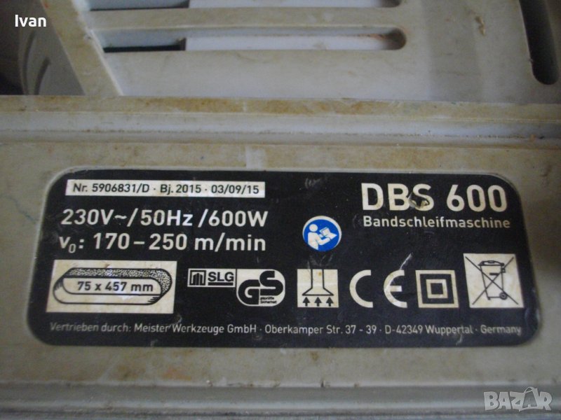 Силен и мощен 900 ватов лентов шлайф, професионелн оригинален немски модел. Марка и модел на машината - S1B-AK5J8. Производство - оригинално германско, вписано на маркировките - Germany - Hamburg.