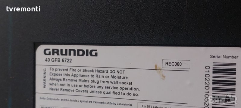 Захранваща платкаZUV194R-06 for 40inc DISPLAY 057D40B75V Grundig 40 GFB 6722 Борда е гарантирано работещ Демонтиран от телевизор Grundig модел 40 GFB 6722 със счупен дисплей 057D40B75V тесвана от нашия техник