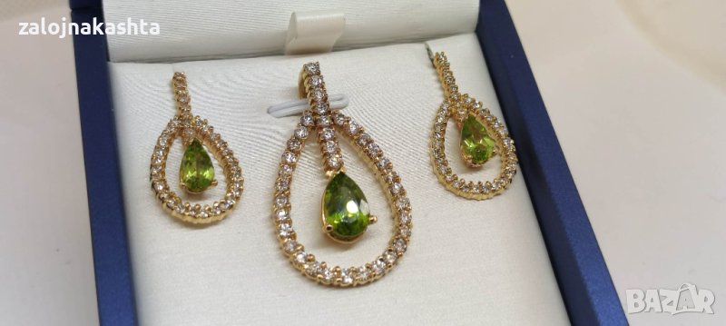 Златни Обеци и висулка с естествен Перидот и Брилянти-12,71гр