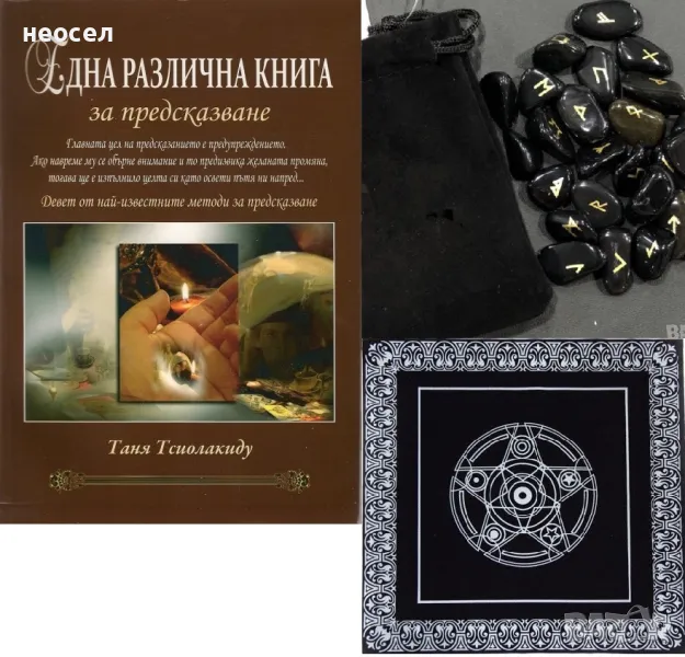предсказване" - 416 стр. с 9 чудесно разработени методи за предсказване посредством личното подсъзнание и базисно психическо ниво. Обща цена 79.00 лв. или съответно 75.00 лв. /+ безплатна доставка до офис на куриер и торбичка за съхранение на руните/ ВСИЧКИ РУНИ И ИЗДЕЛИЯ С РУНИ, МОЖЕТЕ ДА ВИДИТЕ ОТ НАШИЯ МАГАЗИНhttp://www.hiromantia-ezoterika.com/bg/catalogue/%D0%BA%D0%B0%D1%82%D0%B0%D0%BB%D0%BE%D0%B3-%D1%80%D1%83%D0%BD%D0%B8.html