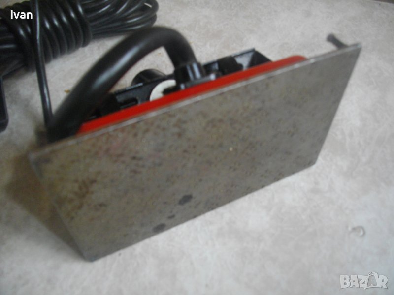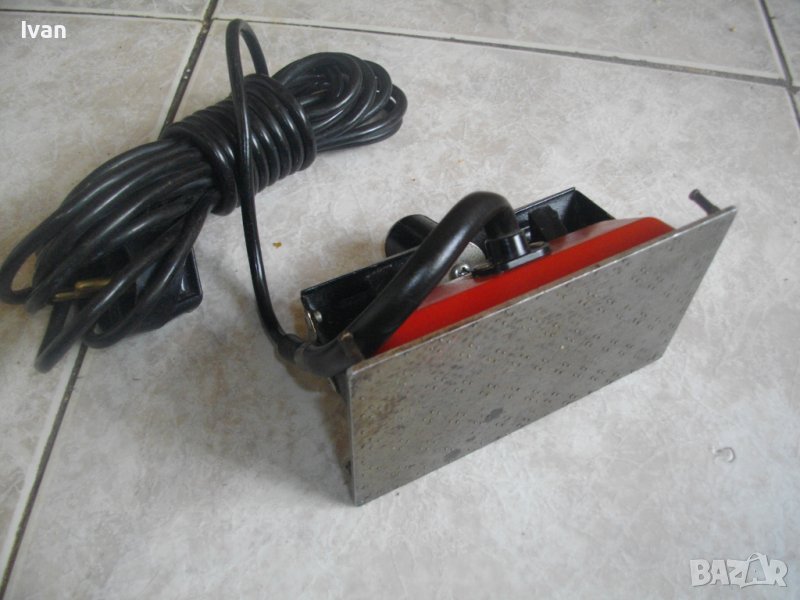 Запазен външен вид и отлично техническо състояние.Затопля работният плот веднага за секунди.Плота е изцяло алуминиев,грапав,с размери-130х80мм.На него се поставя гъба,закрепена на щифтвете отзад на плочата,и торбичка от плат,над гъбата,за работа-почистване.Гъбата и торбичката не са включени към инструмента.На основата има отвор за кръгла дръжка-телескопична пластмасова или дървена,удължител,както на стирките за почистване-тип моп.Рамото на основата за дръжка е подвижно и има възможност за работа под ъгъл до 35 градуса.Корпуса е изцяло метален,масивен.Инструмента не се потапя във вода-упоменато е като инструкция на корпуса.Мощност-270 вата,захранващо напрежение-220 волта,тип щепсел-Шуко.