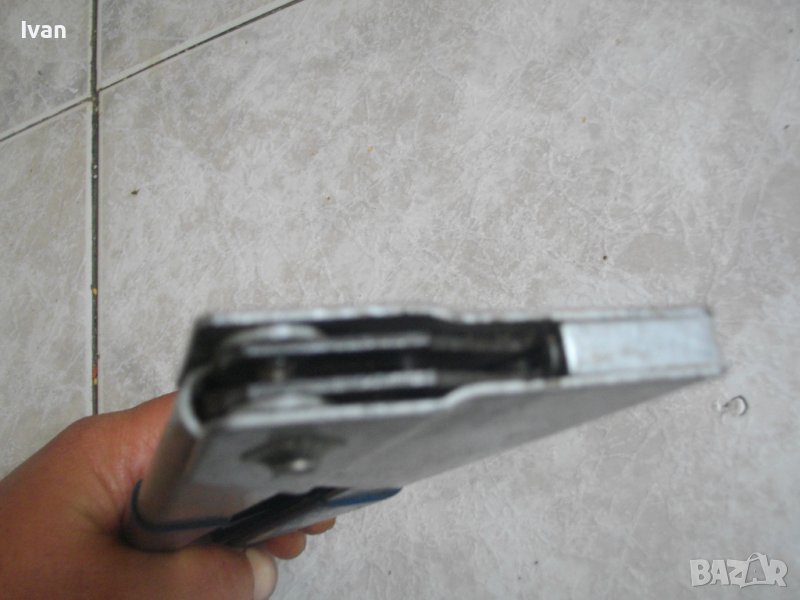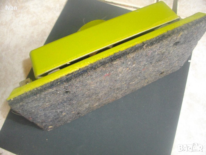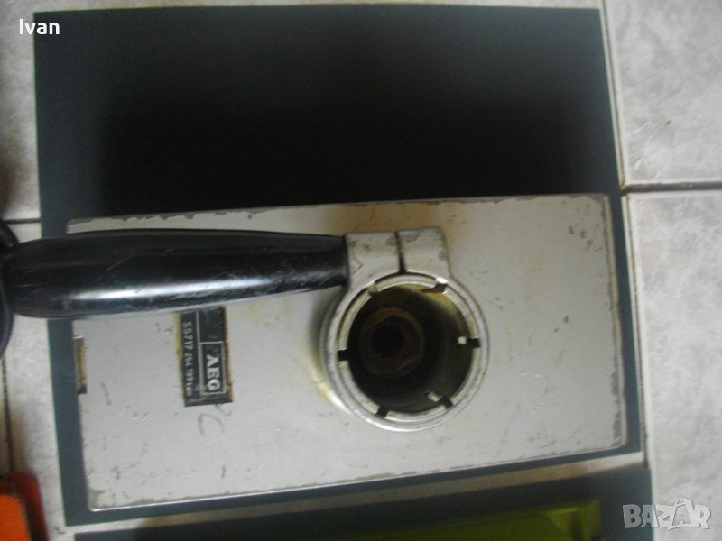 ОПИСАНИЕ на голяма приставка AEG - 79,00лв, немска, с дръжка - Голяма,масивна,изцяло желязна,приставка Виброшлайф правоъгълен,за поставяне към бормашина-дрелка.Приставката е старо,високо качествено на АЕГЕ-Марка и модел-AEG SS717.Производство-оригинално немско. Много запазен външен вид и отлично техническо състояние.Размер на плота за поставяне на обикновенна шкурка-225х110 мм.Захват-странични метални стабилни щипки,по цялата ширина на приставката.Покритие на работният плот-масивна дебела 10 мм инпрегнирана гумирана повърхност,за обиране на вибрациите и против разкъсване на шкурката.Наличие на оригиналната снемаща се дръжка към приставката.Захват на приставаката-за машини бормашини-дрелки на марката AEG.Към приставаката има 1 бр.голяма двойна шкурка-нова,холандска,марка Kingstone-дребнозърнест черен пясъчен абразив р400-за съвсем финно шлайфане.