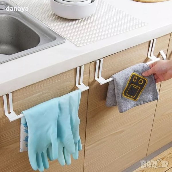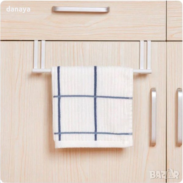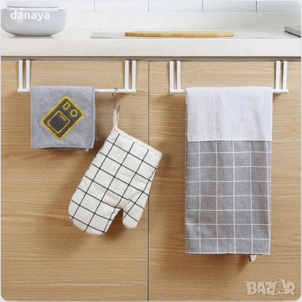 Закачалка за кърпи за кухненска вратичка на шкаф. Закачалката е идеална за закачане на домакински кърпи или други принадлежности. Бърз и лесен монтаж – просто поставете закачалката над вратичката и това е. Здрава и издържлива! Чудесен органайзер за кухнята. Може да бъде поставена както на външната, така и на вътрешната страна на вратичката.