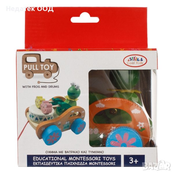Образователна играчка плъзгащо се дървено превозно средство с жаба и дълго въже за дърпане.Помага за развитието на интелигентността и процеса на разпознаване на образи, развива координацията на допир и зрение, пространственото съзнание и стимулира въображението.Предлага забавление, запознава децата с процеса на движение и подобрява развитието на когнитивните умения.