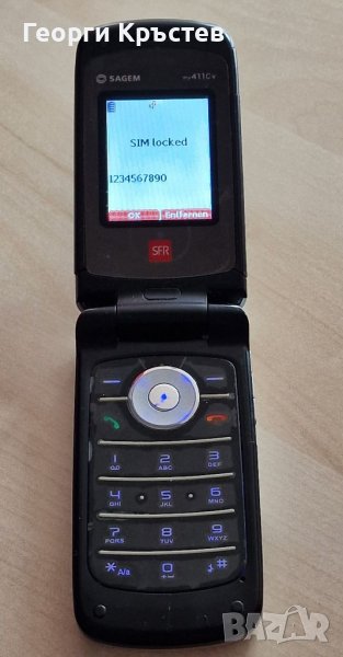 Sagem my 411Cv - лош външен вид, активен и стегнат капак, зарежда си батерията, но е кодиран, без батерия, заден капак и зарядно.