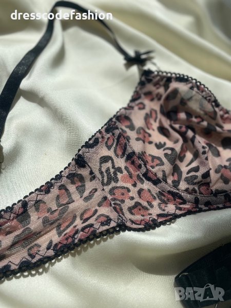 Луксознодамско бельо с тюл от леопардов принт и сатенени панделки.