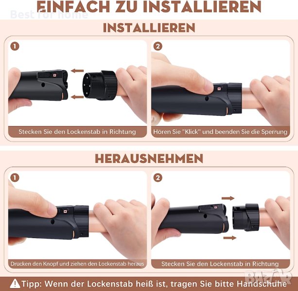 6. Оборудван с ръкавици за предотвратяване на изгаряне и по-безопасно; Снабден с две щипки за коса, той е удобен за гладене на косата, докато се навива