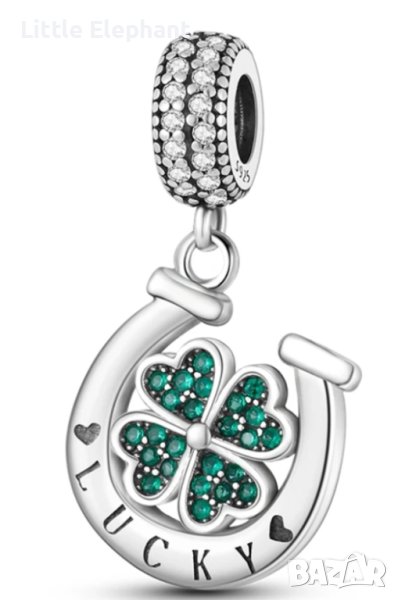 Сребърен висящ елемент подкова и детелина,колекция"Luck"/нов → Обява 40296990