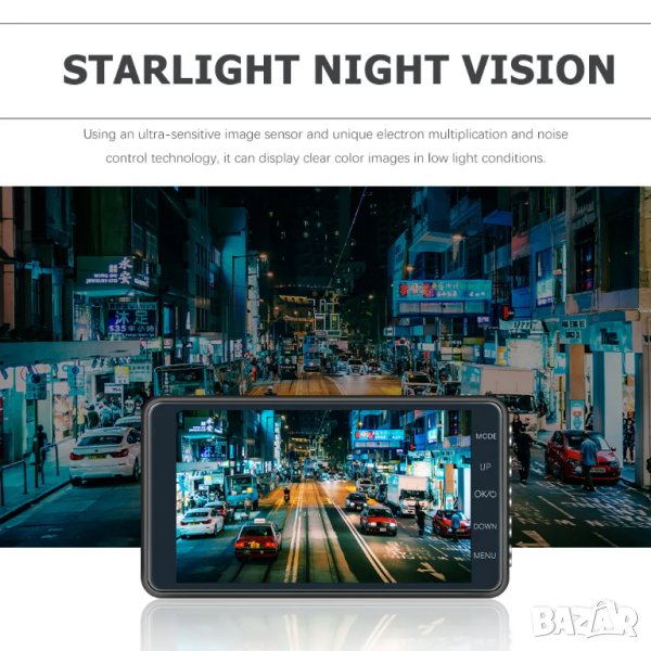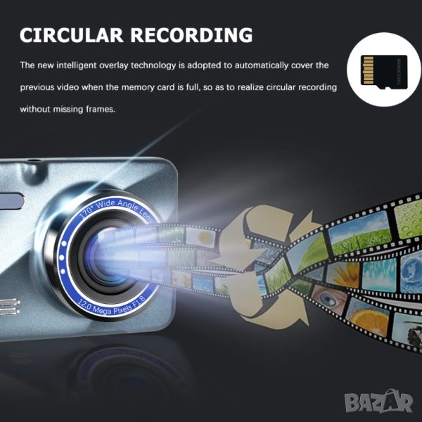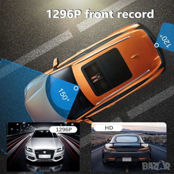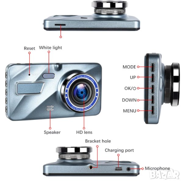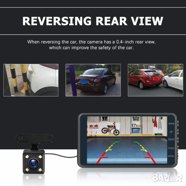 Ново! Висококачествен видеорегистратор 4 инча с допълнителна 2в1 задна камера за записи и за паркиране.