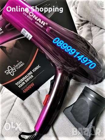 Професионален сешоар създаден за вашият комфорт с ергономичен дизайн с удобен захват за да не натоварва ръката и китката по време на работа с него, концентратора на въздух спестява време и енергия при сушене. Мощтност 4000 Watts ви гарантира бързо сушене на косата. ОСНОВНИ ФУНКЦИИ: - 3 температурни нива. - 2 нива на вентилация. - топъл и студен въздух. - Йонизиращата лампа. - Вградена халка за окачване. - Защита против прегряване. - Висококачествен АС мотор. - Приставки в комплекта: - 2 концентратор. - 1 гребен -