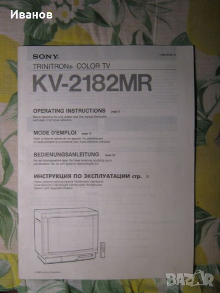 Sony Black Trinitron 29" - телевизорът е закупен от кореком през 1988г. и е ползван до 1991г. След това се обзаведохме с някакъв 14" "куче марка", защото Сонито се оказа много голям за стаята ни - е, все едно от Мерцедес да слезеш на Трабанче, ама такъв е животът. През тези изминали години Сонито е правилно съхранявано на сухо и тъмно, на тавана на къщата. Телевизорът е доста тежък.