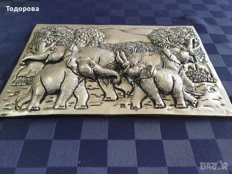Красива релефна пластика на семейство слонове. → Обява 40302176
