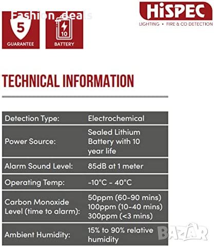 Този детектор за въглероден оксид е проектиран да осигури дългосрочна защита на семейството и домашните ви любимци от опасностите, свързани с CO. Детекторът за въглероден диоксид HiSPEC е оборудван с усъвършенствана технология, включително функция за самотестване на сензора и възможност за самодиагностика, за да се гарантира надеждна работа във времето. Детекторът има и предупреждение за изтощена батерия и индикатор за захранване/аларма, за да ви информира за състоянието си. Десетгодишната запечатана литиева батерия осигурява безгрижна защита, без да е необходима честа подмяна на батерията. С този детектор можете да сте спокойни, че домът ви е защитен от опасностите, свързани с въглеродния оксид.