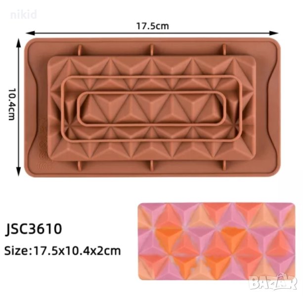 Шоколад шоколадов блок шоколадова плочка триъгълници силиконов молд форма фондан, снимка 1 - Форми - 40302687 Шоколад шоколадов блок шоколадова плочка триъгълници силиконов молд форма фондан, снимка 2 - Форми - 40302687 1/2