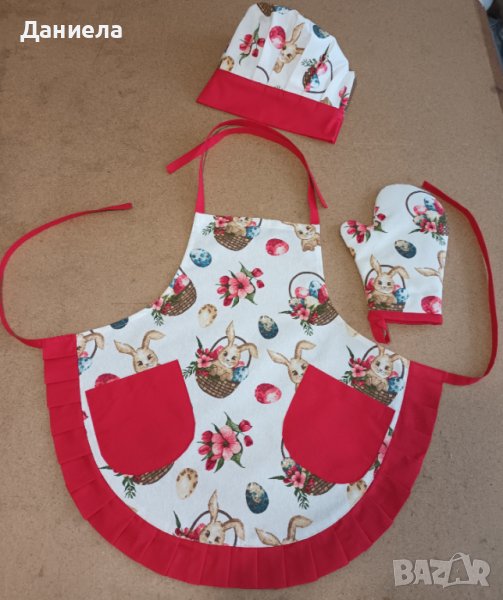 Детски готварски комплекти за Великден. Плат дук, незадържащ петна и вода. Изработвам по поръчка в желан десен и размер. Налични и други десени