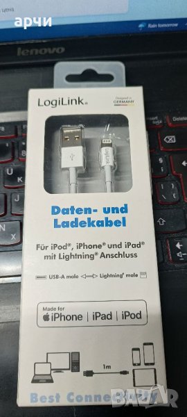 Оригинални кабели за Айфон. Цена в Германия 10 евро. Информация за продукта "LogiLink Apple Lightning към USB кабел за връзка, бял 1,00 m бял"