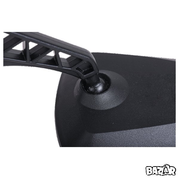 Огледалото може да се наглася на всички ъгли чрез сферичен механизъм, който е поставаен отзад на огледалото.