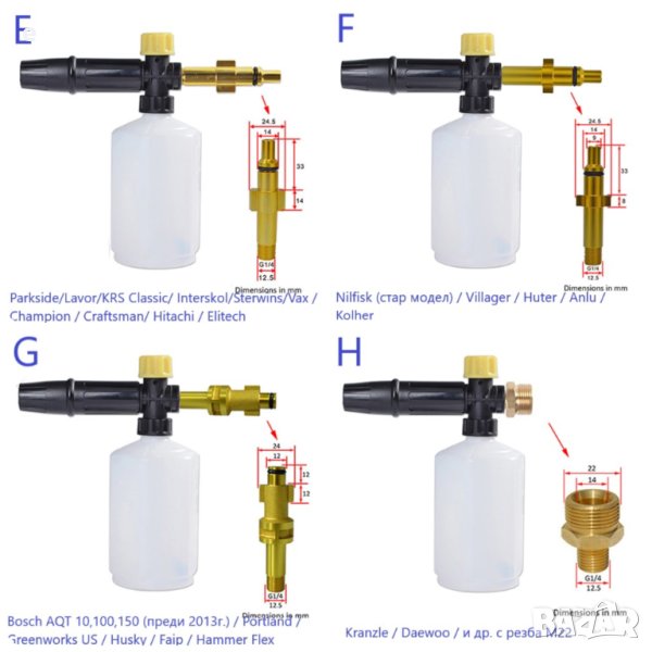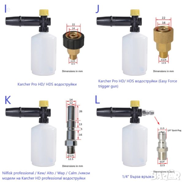 Дюза за пяна за водоструйки Karcher,Bosch,Parkside,Lavor,Steinhaus др.