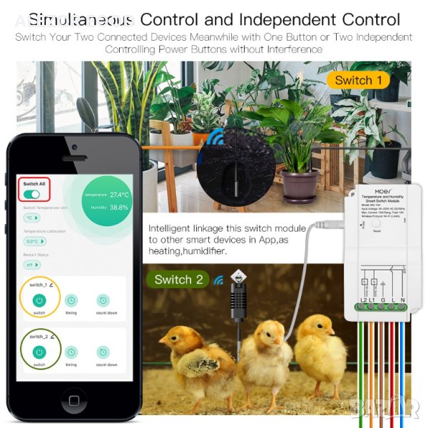 2.Съвместим с приложението Smart Life с много лесен режим на сдвояване за добавяне на устройството с Wi-Fi и Bluetooth връзка. Чрез телефонът си или друго смарт устройство можете да наблюдавате и контролирате с отдалечен достъп процесите по нагряване, охлаждане, изсушаване или навлажняване. Интелигентният термо и влагорегулатор е подходящ за стаите във Вашият дом, инкубатори, сушилни, хладилни помещения, парници при отглеждане на разсад, разсадници и други.