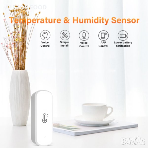 Wi-Fi smart сензор за влажност и температура с компактни размери. За мониторинг от разстояние на влажността и температурата в различни помещения. Възможност за интелигентно свързване с други смарт устройства във Вашият дом, чрез приложението в телефонът Ви. Например ако сензорът отчете, че температурата е паднала под 20 градуса да се включи Wi-Fi интелегентния контакт в който е включен климатика или друг отоплителен уред.