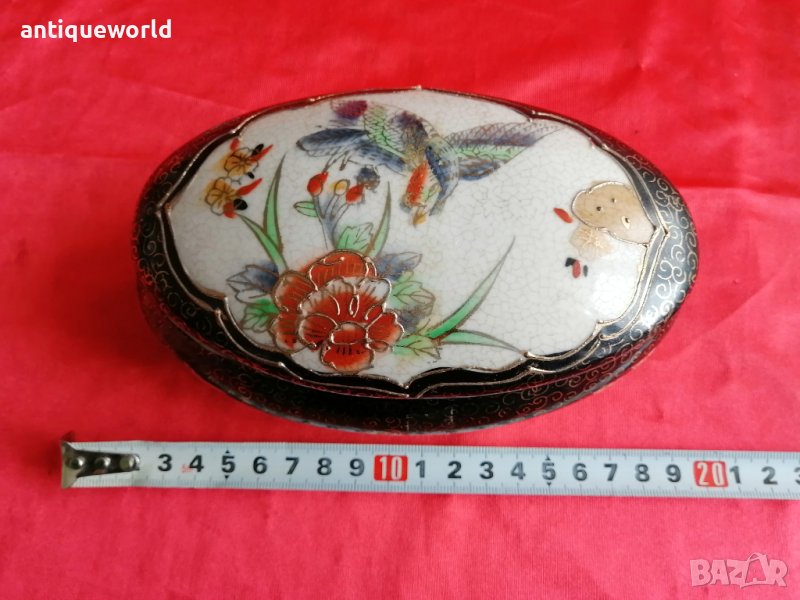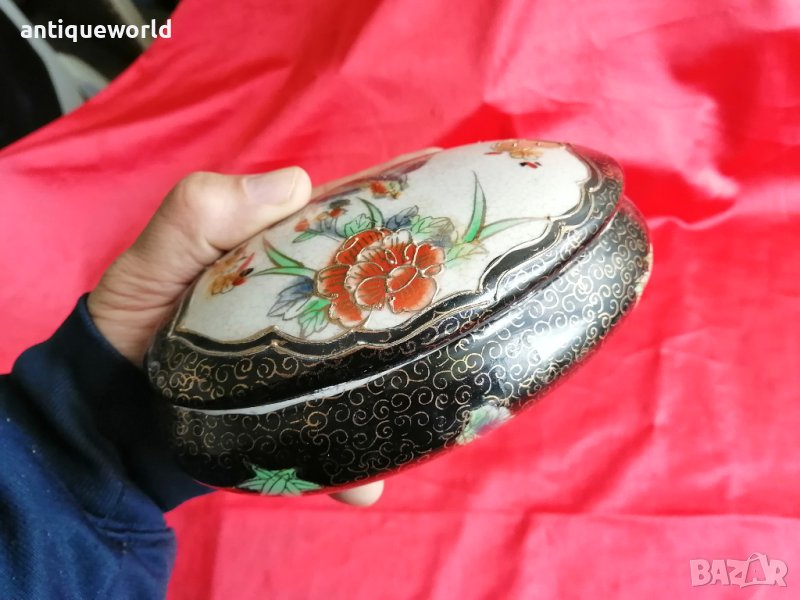Уникална Много Красива Ръчно Рисувана Стара Японска Порцеланова Кутия за Бижута Roql SATSUMA . Злато . Налична Маркировка .