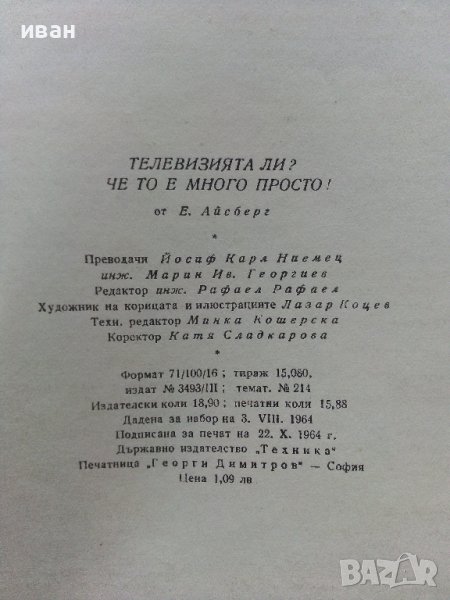 Телевизията ли? че то е много просто - Е.Айсберг - 1964г.  → Обява 40308869