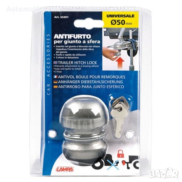 Заключващо устройство за ремарке Automat, Секрет, Ф50, 3 ключа, Сив.
