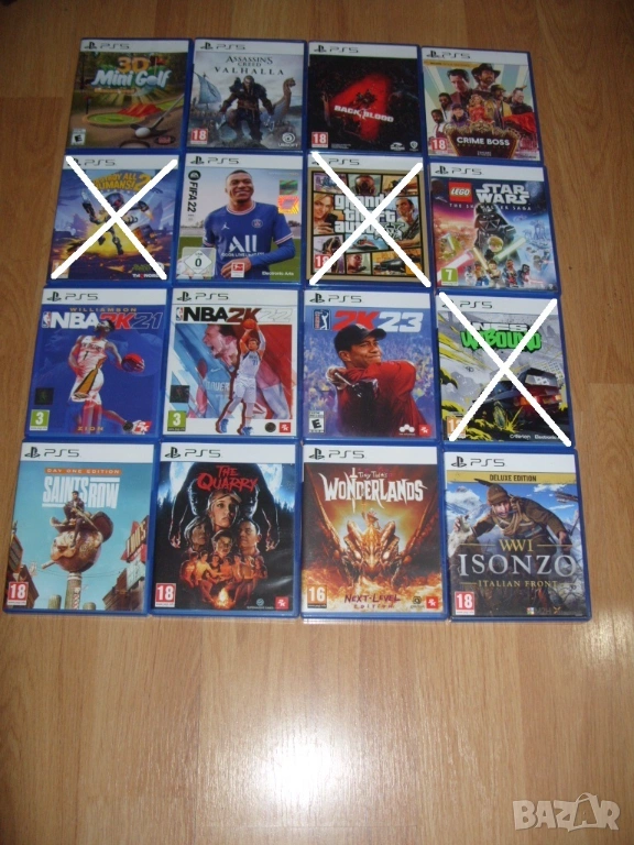 Всички игри които са продадени са задраскани на снимките и не са изписани в списъка.