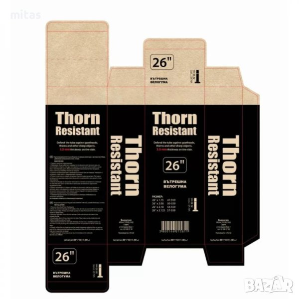 вътрешна гума - (26 x 1.75/2.125) AV40 BOX Thorn resistant AV 40mm - 14.9 лв.