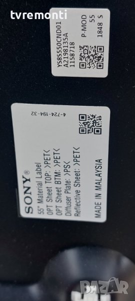 Power Supply 1-980-310-31 APS-395/B Sony Bravia KD-55XF7096 DISPLAY YS8S550CND01 Борда е гарантирано работещ Демонтиран от телевизор Sony Bravia модел KD-55XF7096 със счупен дисплей YS8S550CND01 тесвана от нашия техник