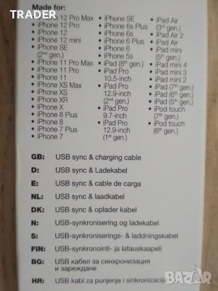 зарядно кабел за зареждане USB to lightning за IPhone Ipad Ipod → Обява 40318153