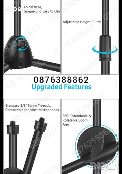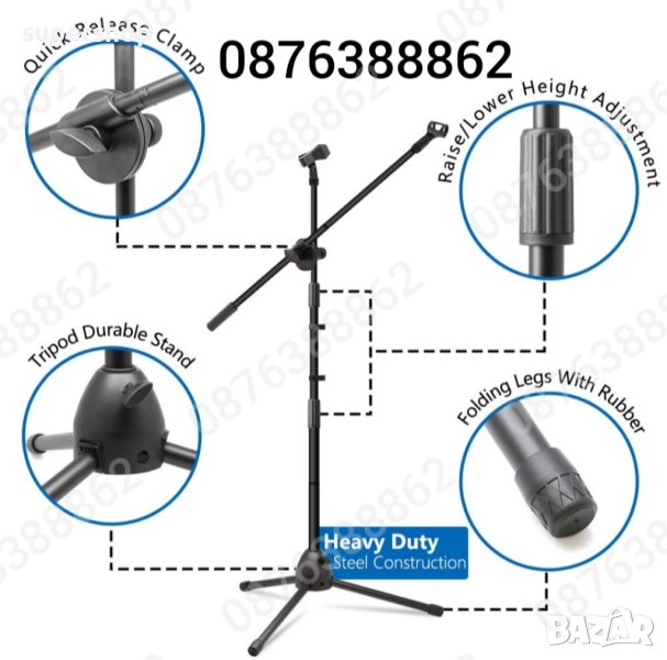 Стойка за микрофон, eдно удължаващо рамо и едно за микрофона, комплект с 2 накрайника.Височината и ъгълът на наклон могат да се регулират свободно според вашите нужди, както и да се върти рамото на 360 градуса, за да се позиционира удобно микрофона на оптималната му височина.