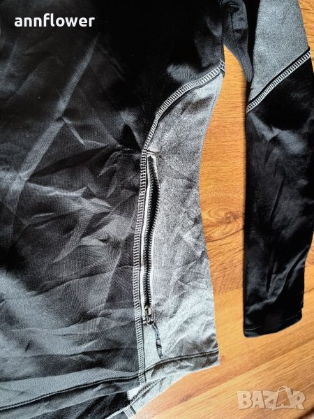 Горнището е като ново и оригинално. Материя полиестер, черно със сиво. Размер М/L. Дължина отпред 61см, отзад