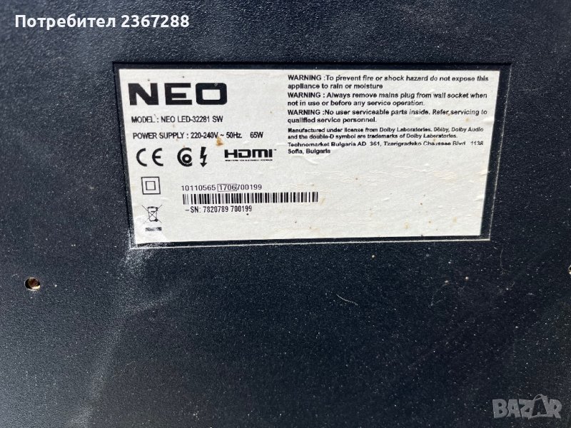NEO LED-32281 SW със счупена матрица, снимка 1 - Части и Платки - 40319698 NEO LED-32281 SW със счупена матрица, снимка 2 - Части и Платки - 40319698 NEO LED-32281 SW със счупена матрица, снимка 3 - Части и Платки - 40319698 1/3