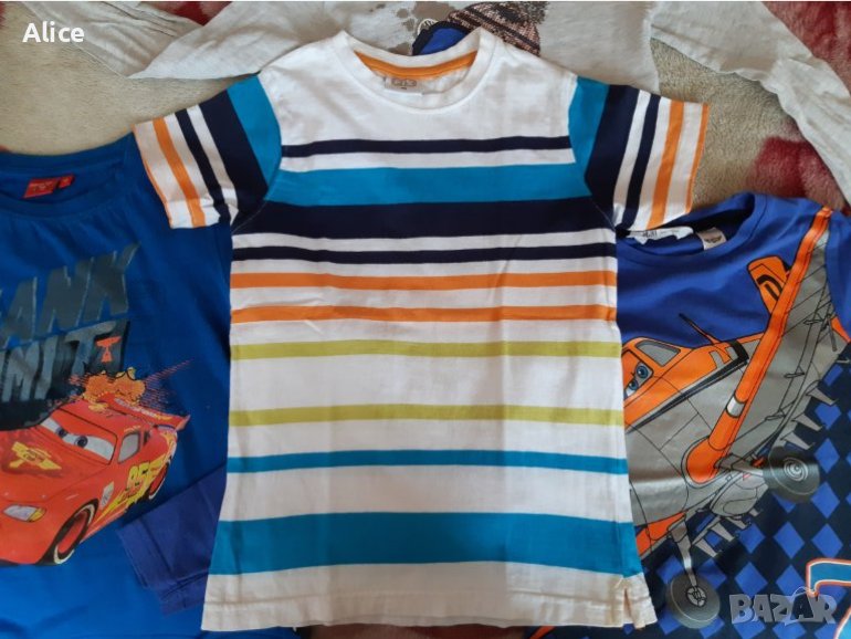 - Блузки с дълъг ръкав и две тениски - за 4-6 годишно дете, р. 116-122 - ЦЕНА 5 лв. за брой. Шарената тениска е обличана само един път, тя е размер 116. Всички са като нови. Материята е много мека.